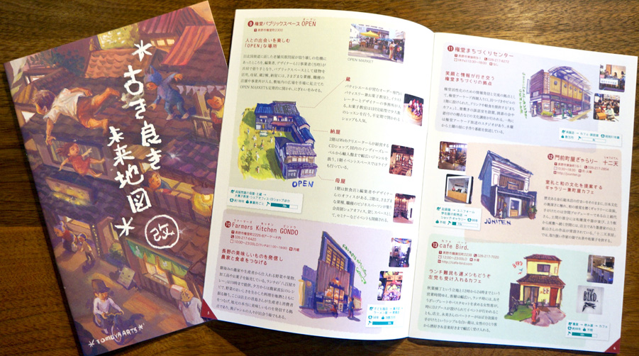 最初に手にしたのは、写真の「古き良き未来地図」。善光寺門前エリアの小さなお店をまとめたガイドブックで、なんと100円。なんともワクワクするお値段。このあたりのお店ではたいてい置いてあるそうです。