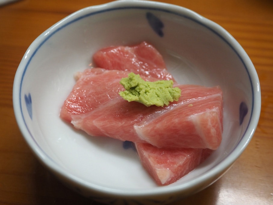 しかし、おかあさんのホスピタリティは留まることを知らない。突然、「これ、どうぞ」と小皿を持ってきてくれた。え? 「さっき、モウカの星をお出しできなかったから……。サービスするので、良かったら食べてください」。ええ! ていうか、このサシが入った美しいお刺身はもしかして? 「本マグロのトロです」。ええええ!! 「それだけ余っていたから、いいのよ! 食べて!」。