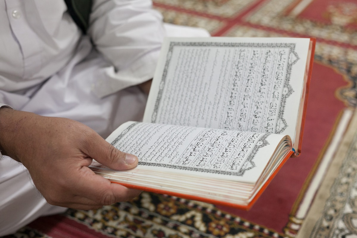広い礼拝所で先生は一人、コーランを静かにめくっている。 コーランは一番大切な本だから、下には置かないで、いつも本棚の上の方に置くんですよ、と先生は昨日言っていた。だからだろう、大事そうにそっとコーランを手にして、それに目を通している。