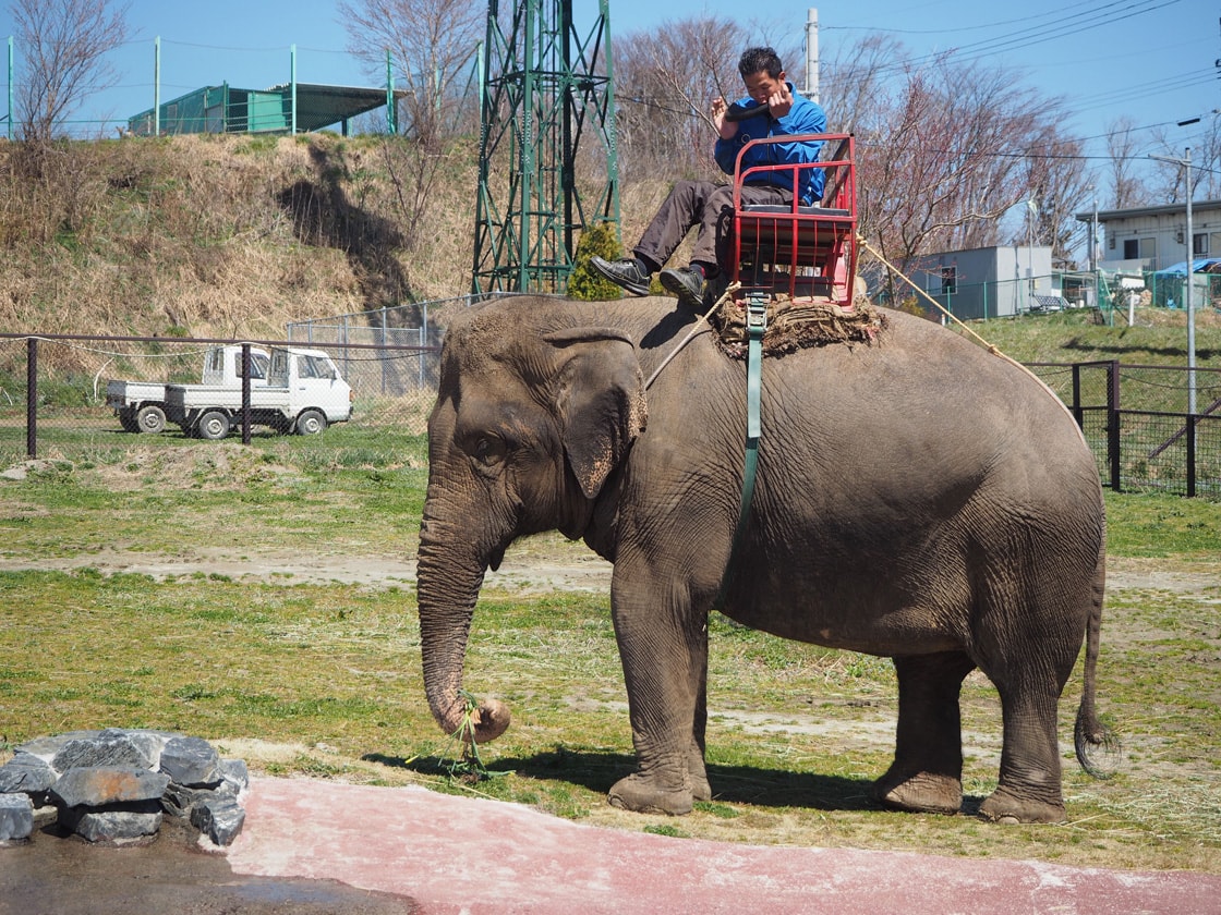 ゾウ舎の掃除とゾウの食事は同時進行で進み、「ゾウライド」は開園と同じ9時から16時まで。僕が訪ねたのは平日だったから、ゾウもゾウ使いものんびりしていたけど、ゴールデンウイークなどのピーク時は長い行列ができて、ゾウ達が「ゾウの村」の中の1周3分ほどのコースを200周することもあるそうだ。