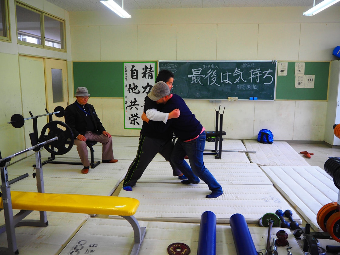 力の強さには少しばかり自信があったのだが、ガチンコで押してみても、拓海くんはビクともせず、余裕の表情。逆に、押してみてくださいと頼んだら、1秒ももたずに体制を崩された。さすが、岩手県の強化指定選手!