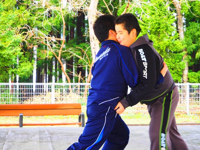 筋トレの後、力士会から寄贈された土俵に移動した。冬の間はシートをかけて大切に管理されているが、暖かい季節になると、山田町唯一のこの土俵が二人の練習場所になる。もし力士会が土俵を再建しなければ、練習場所を失った二人は相撲を続けられなかっただろう。言い換えれば、力士会が途絶えかけた山田町の相撲の絆を守ったのだ。