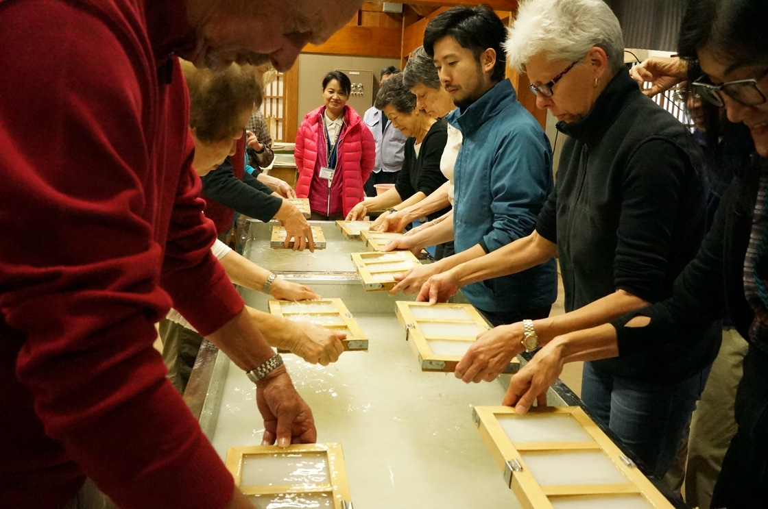 この日は、四十人以上の外国人がやってきました。アメリカ、フランス、カナダ、オーストラリア……ピーク時には百人を超える外国人が連日押し寄せるそうです。欧米人にとって紙は機械で大量生産するもの。五箇山和紙ならではの手作業の多さに注目しているようです。