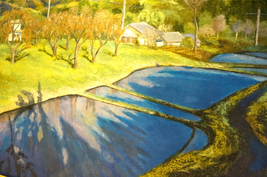 こちらは「ちぎり絵」。和紙をちぎって重ねて絵を描いています。毎年10月に和紙祭りが行われ、全国から作品が集まるそうです。