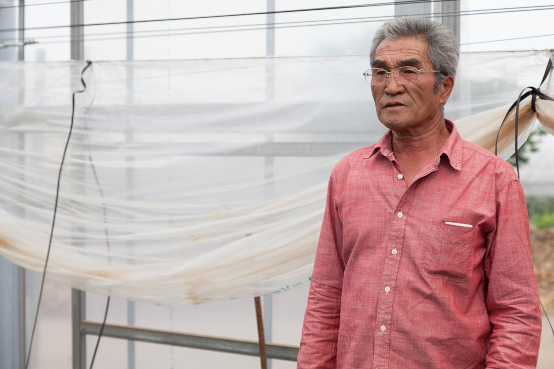 そしてハウスへと続く農道に一人の男性が立っていた。それがシモタファームの主、霜多増雄さんだった。
