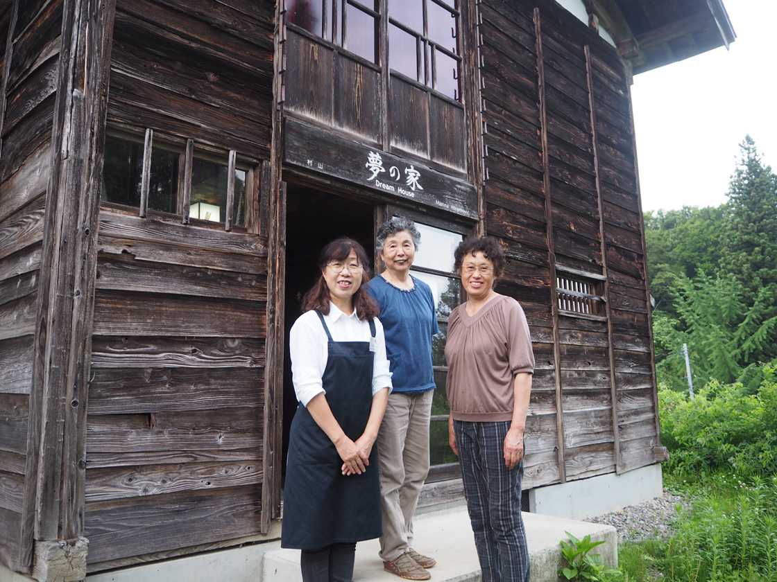 中では、「夢の家」の管理人さんを務める恵美子さん(57歳)、幸子さん(69歳)、雅子さん(70歳)が待っていてくれた。三人は、農業などの仕事をしながら、もう15年間もこの家を守っている。