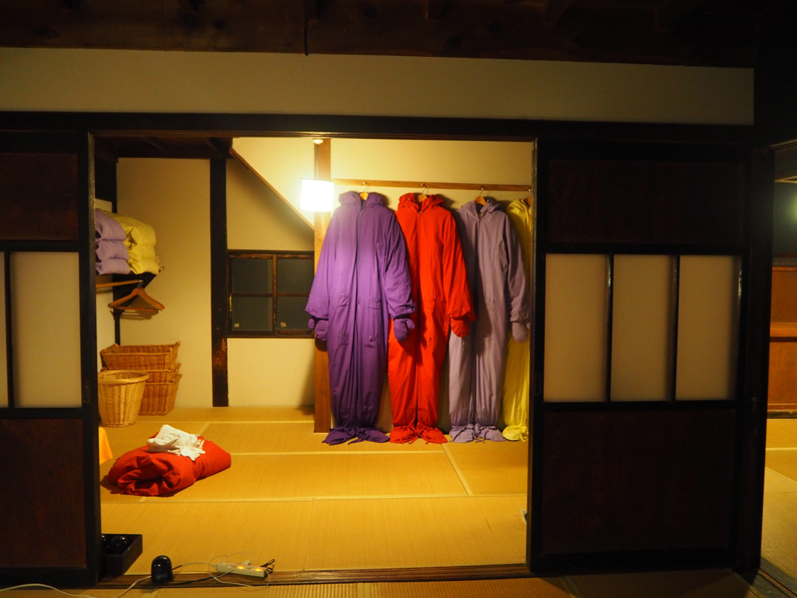 用意されていた真っ白い全身タイツ(モジモジくんみたいな感じ)を身につける。次は、いよいよ宇宙服を着るわけだが、この時点で、泊まる部屋の色を選ばなければいけない。