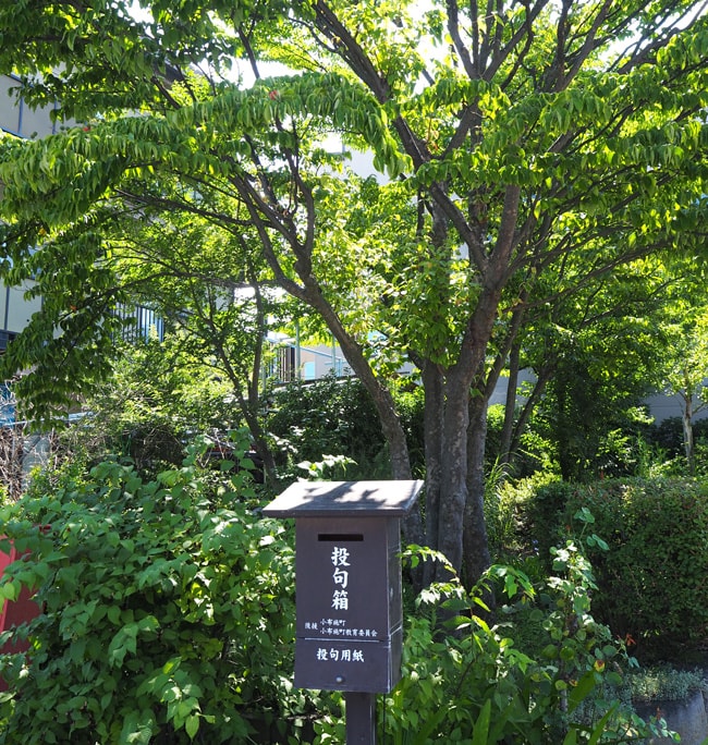 不思議だなあと首をひねりながらロータリーを横切ると、美しい花壇と小さなポストのようなものが目についた。近寄ってみると、「投句箱」とあった。ふと浮かんできた俳句を、ここに投函するのだろうか?