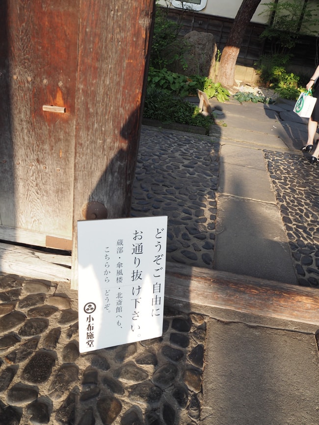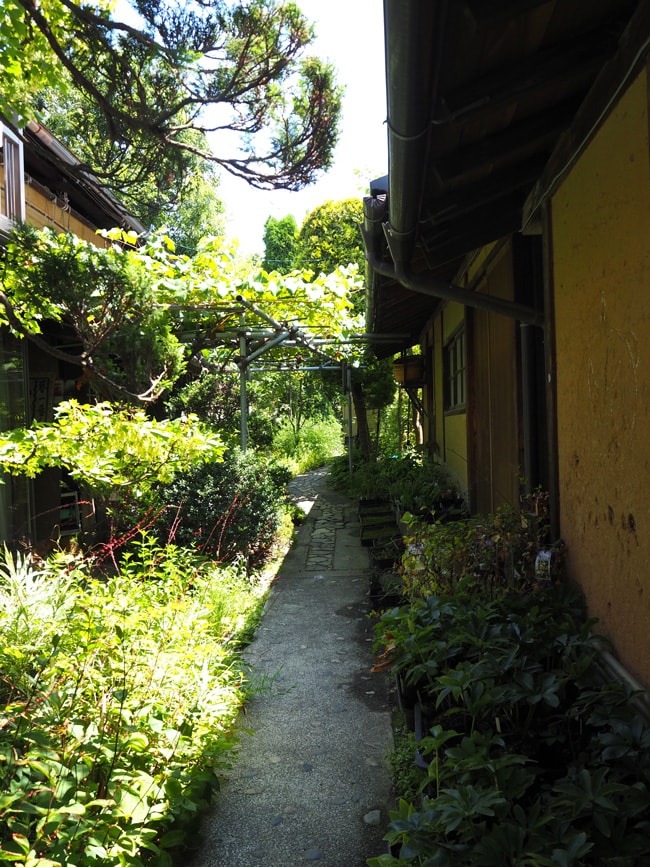 ゆっくりと鑑賞しながら通り過ぎる。軒先で洗濯物を干しているところを見ると、今も人が住んでいる普通の家屋だ。庭から庭へと進むうちに、最後に商店の勝手口に出た。