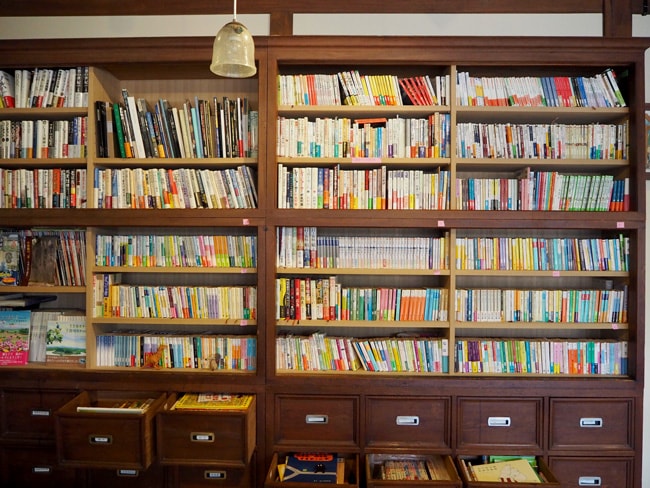 さて、と私はじっくりと書棚を拝見した。最近の小説のベストセラーから、歴史小説、絵本、漫画、珍しい東南アジアの小説全集、そして棚の中には終戦直後の『文藝春秋』や戦前の教科書などの貴重な本まで並んでいる。そこには、オーナー夫婦の人柄とこの家の歴史がそのまま表現されている気がする。