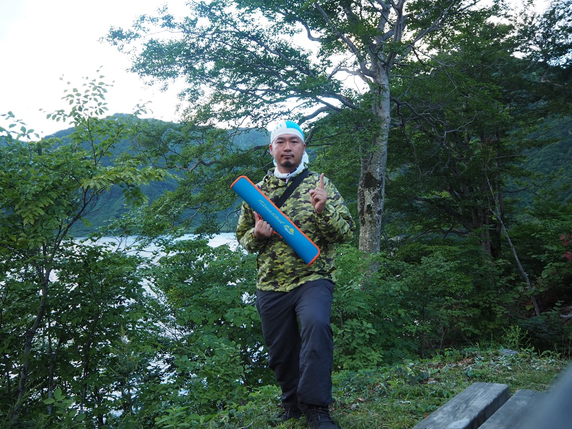 山小屋から池の淵を歩いて20分で沢に着いた。透明度の高い池の水の中に、小さな魚がたくさん泳いでいるのが見える。俄然やる気が高まったけど、すぐに萎えた。