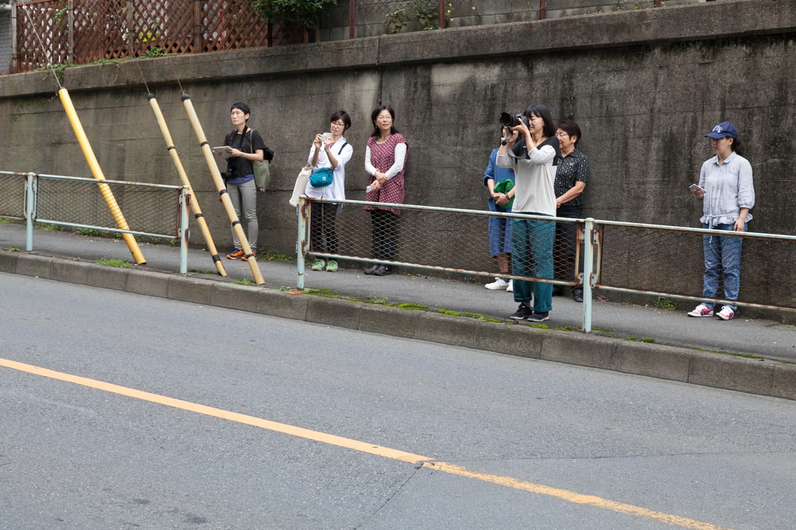 川瀬さんたちは道路を渡って、少し遠い位置から撮影し始める。道路には車や自転車がどんどん通るので、川瀬さんは、過ぎ行く人々を確認しながら、ゆっくりと撮影していた。多分、そんな二度と出会わないかもしれない人々も、写真のなかに収めているのかもしれないな、と私は道路を隔てた川瀬さんを見て、ふと思った。