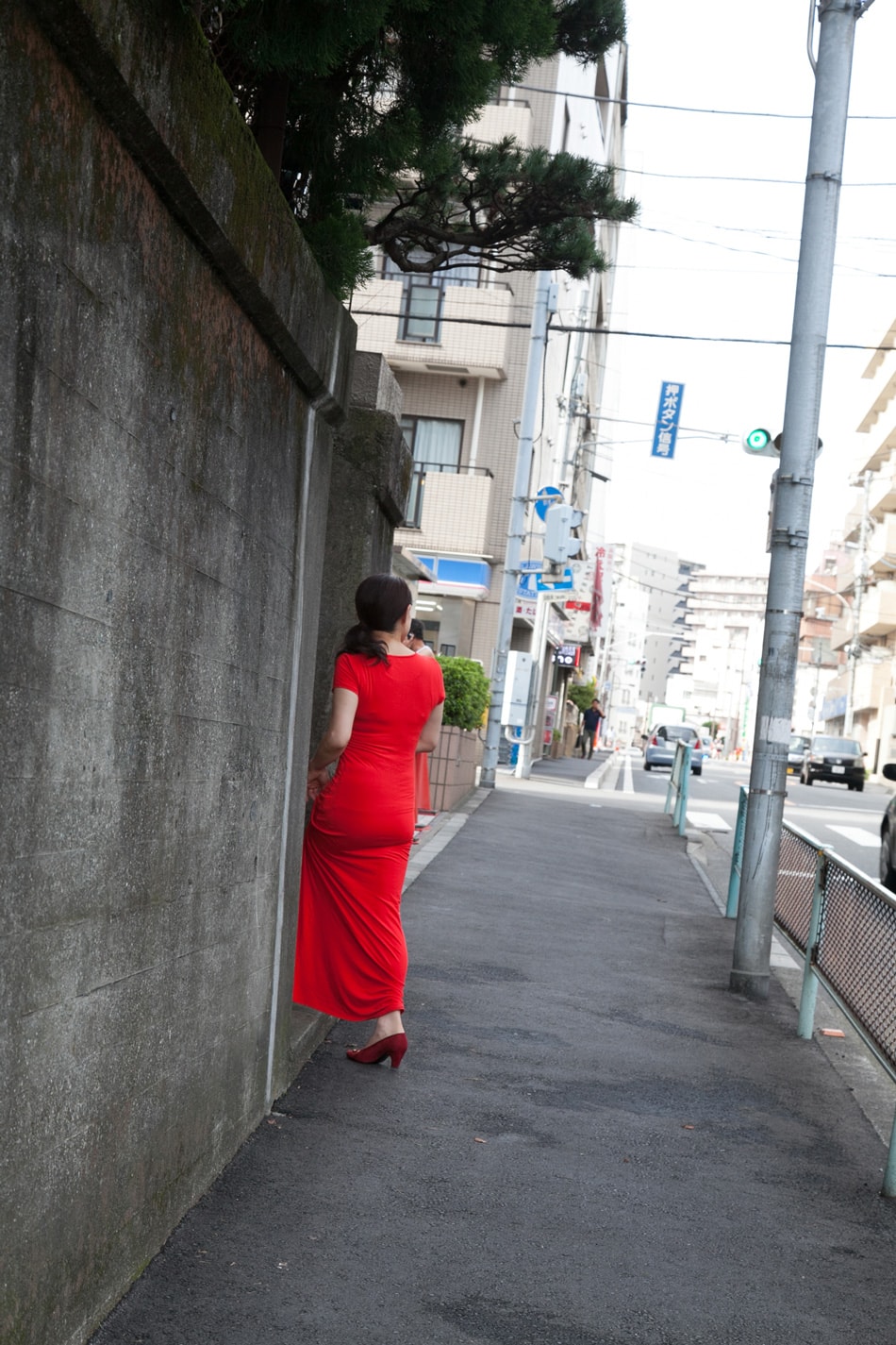 ここでも清美さんは赤いドレスを着て階段を登り、「←」とともに写真に収まった。さて、どんな写真になったのだろうか?