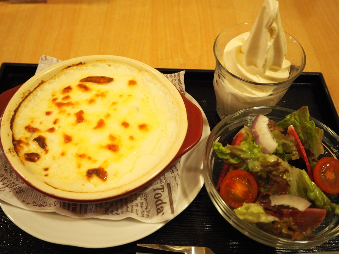 まずは、下仁田ネギのグラタンを実食。新井さんによると「下仁田ネギは霜が3回降りると本当の甘みが出る」そうで、だいたいクリスマス前後が食べ頃ということだっだけど、グラタンに埋もれたネギは、すでに十分に甘い! 濃厚でクリーミーなチーズとネギの歯ごたえ、甘みが絶妙なハーモニーを奏で、あっという間に完食してしまった。
