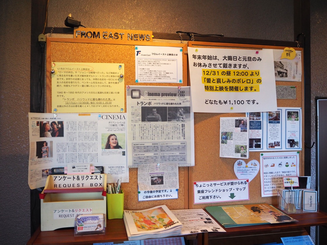 「フロムイースト上映会は私の人生の真ん中にあるもので、これを生きがいに、ほかの仕事でお金を得るという感覚でした。以前、大雪で車も走っていないような日に、ひとりだけ、長靴をはいて歩いて映画を観にきてくれた方がいました。その人に、この映画、良かったよ! と言ってもらうと、それがものすごく嬉しくて、エネルギーになって、また明日もやろうと思えるんです」