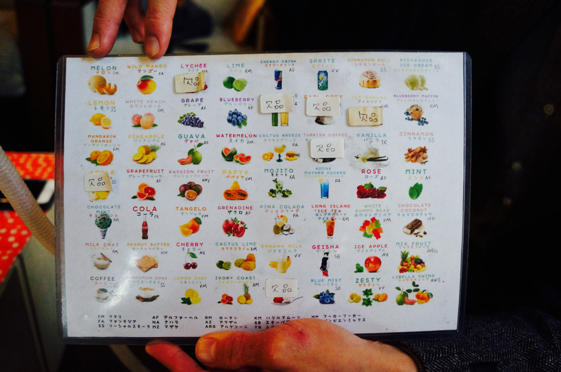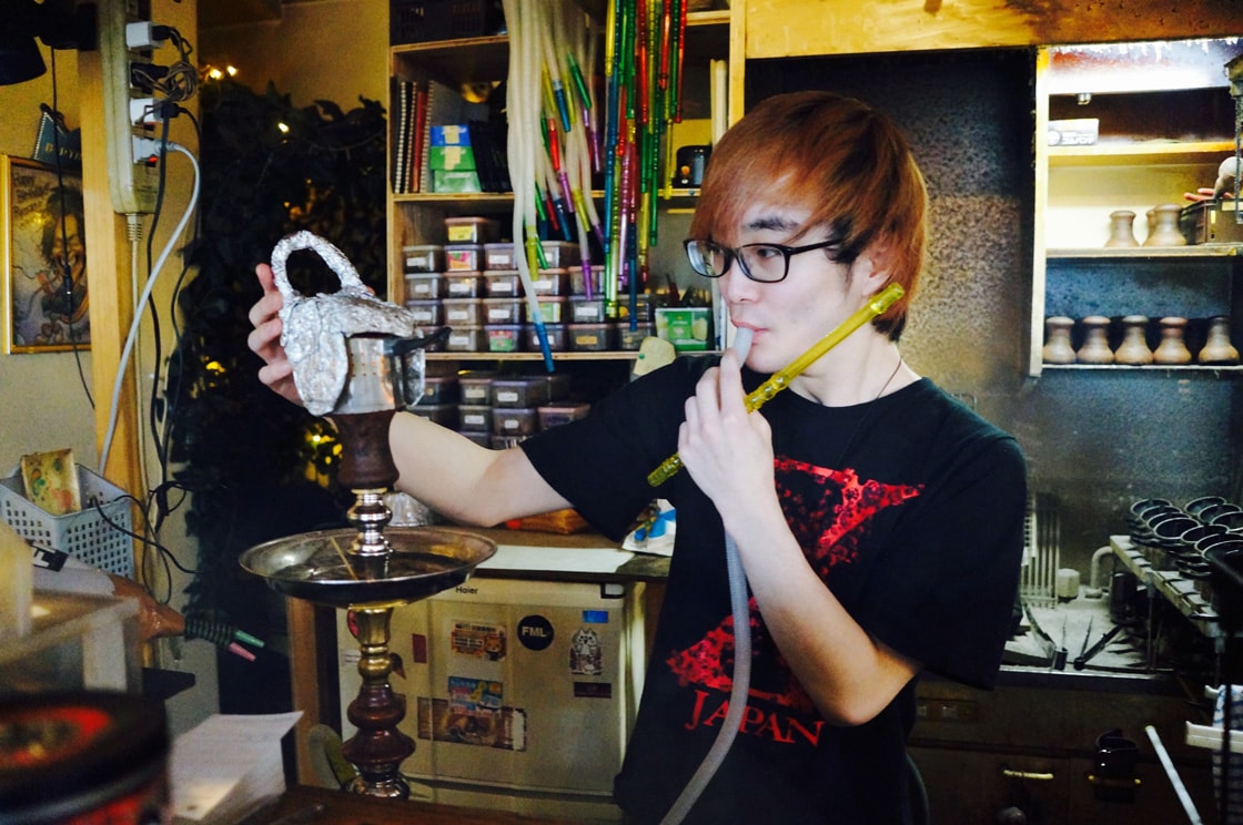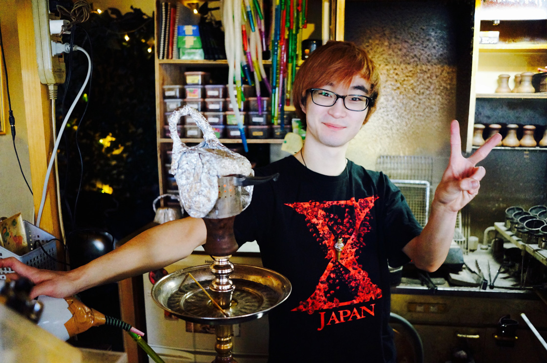 亮さんと話しはじめて1時間半。ついに水タバコの煙も尽きた。まもなく開店時間というわけで、ぼくは、もう1本、吸ってみることにした。