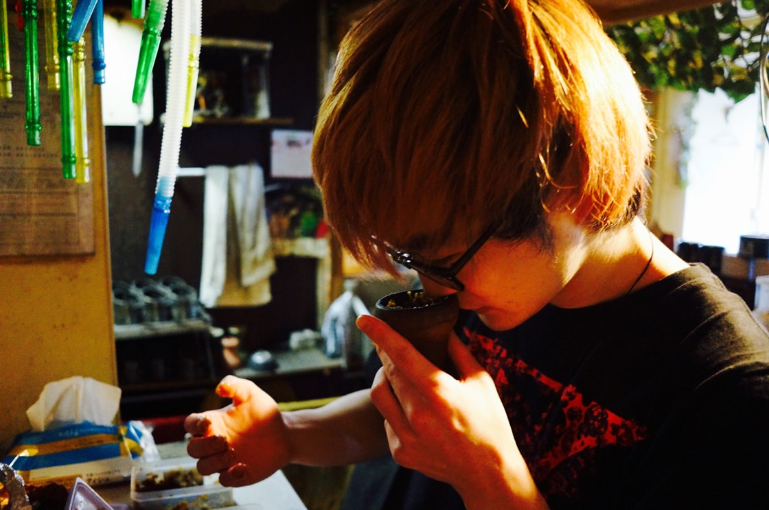 そして、「吸い出し」という作業にうつる。炭を置いてもすぐに火はまわらないため、口で吸って熱をまわして、適度な温度に持っていく。これもまた職人技である。