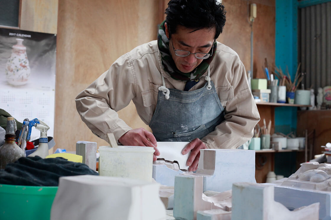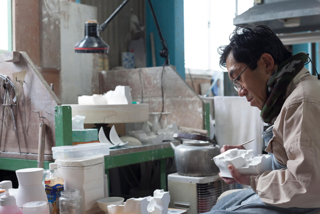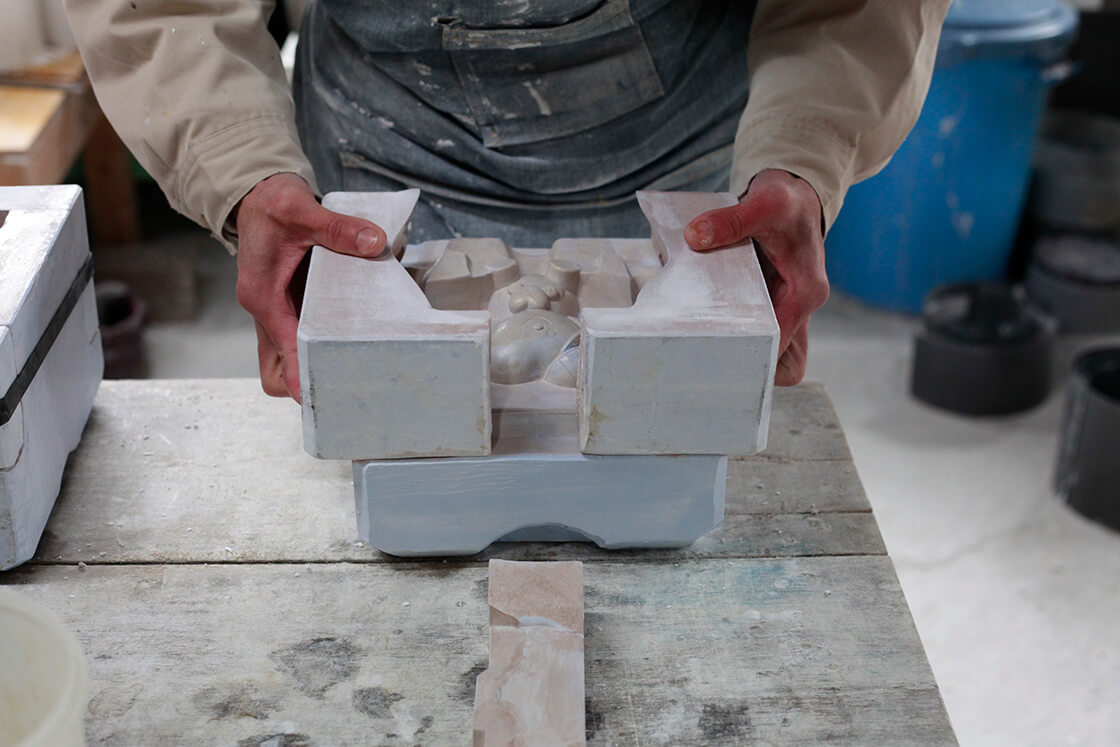 そういう彫刻のような仕事を得意とする山辰さんの工場では、いわゆる有田焼の器の型だけではなく、国内外の様々な企業やアーティストからの発注も多い。例えば大手企業のノベルティのマスコット人形を頼まれる時もあれば、まだ若くてそんなに予算はないけれど、いいものを作っている外国人のデザイナーだったりと、発注先も様々だ。