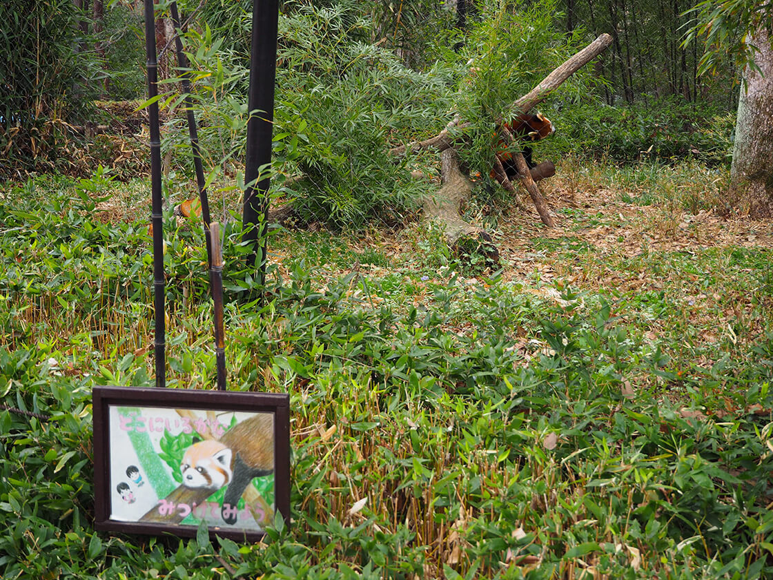 レッサーパンダの展示場所は植物が生い茂っていて、レッサーパンダがどこにいるのか一瞬わからなかった。