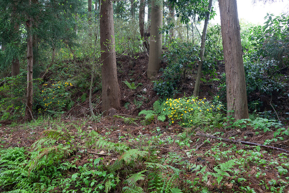 千葉さんが「大沼家の裏手の道を歩いてみましょう」と案内してくれた道「片平丁」は、うっそうとした木立の中へと続いていく。この片平丁の右手には「大庭」と呼ばれる要害の前庭だった場所があるのだ。千葉さんに促されて、茂みの中をよく見ると、武家町と殿様が住む城とをはっきりと区切るために、一段高くした土塁の跡と堀跡が築かれているのがわかる。「大庭では侍たちや馬の訓練が行われていたんですよ」と千葉さん。