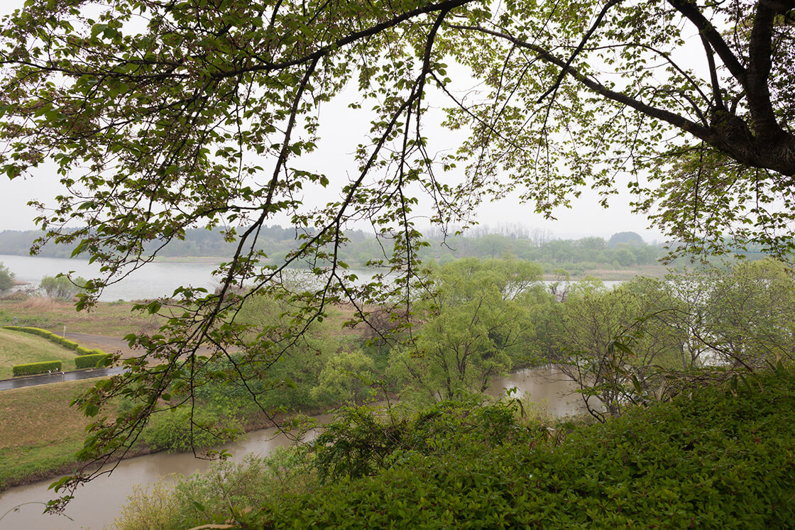 土塁に沿って片平丁を抜けると、要害の入り口、昔の「二の丸」にたどりついた。今はもう建物は残っていないが、二の丸は広々として往時を偲ばせるには十分であり、ここから北上川の雄大な流れを望むことができる。この日は雨だったけれども、晴れている時はもっといい眺めに違いない。