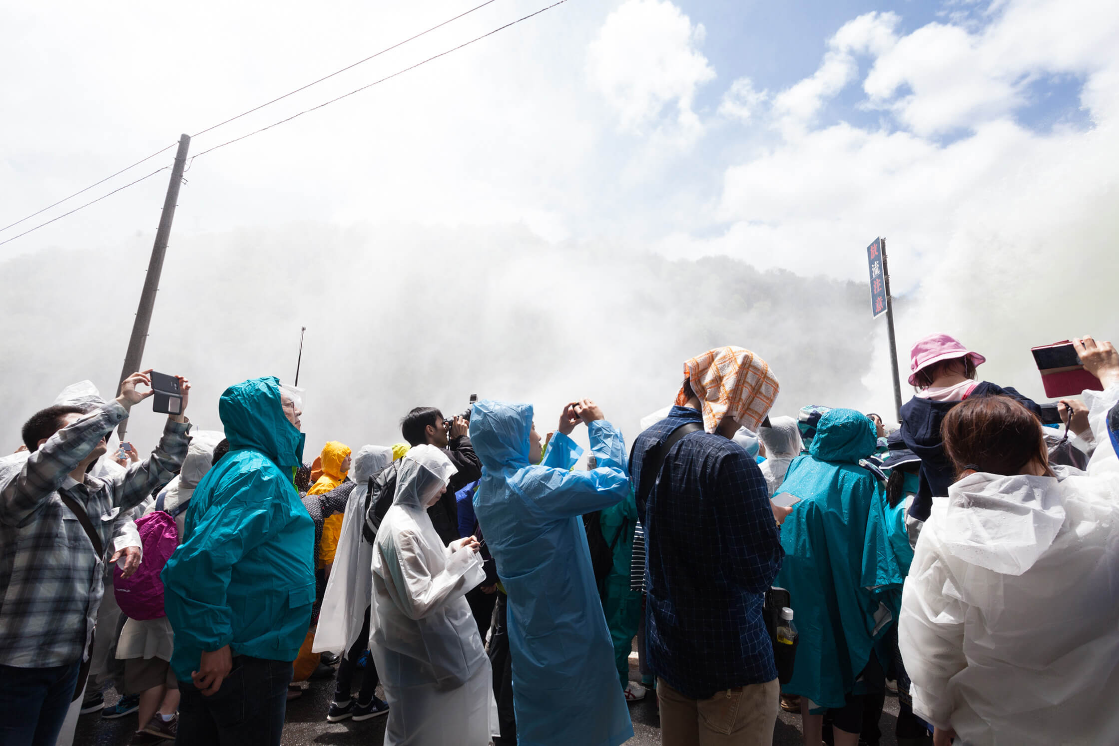 それはそれは見事な光景だった。こんな圧倒的な水の塊、見たことがない。海の波とも違う、30トンの強烈な水の力は、日光を浴びながら、楽しい祭りのように、歓声を上げる人たちの上に降り注いでいた。水を浴びること、水の塊を写真に収めること、私も周りの人たちも、ただただ、この瞬間を夢中で楽しんでいた。