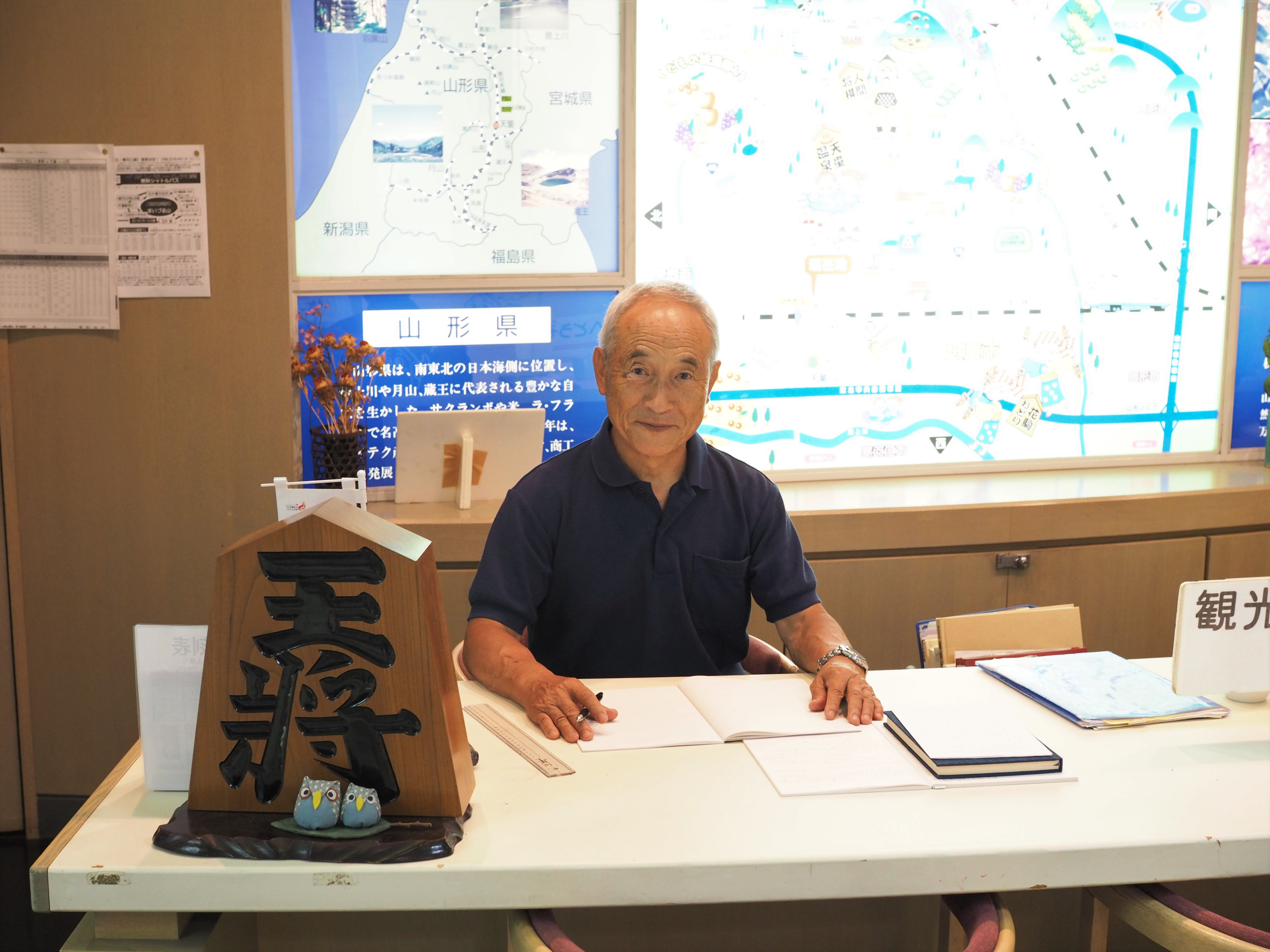 そう言うとおもむろに立ち上がり、奥の事務所まで案内してくれた。座っていたのは天童市観光物産協会の専務理事、林祟氏さん。にこやかな笑顔で、「天童市の取材は大歓迎です」と出迎えてくれた。