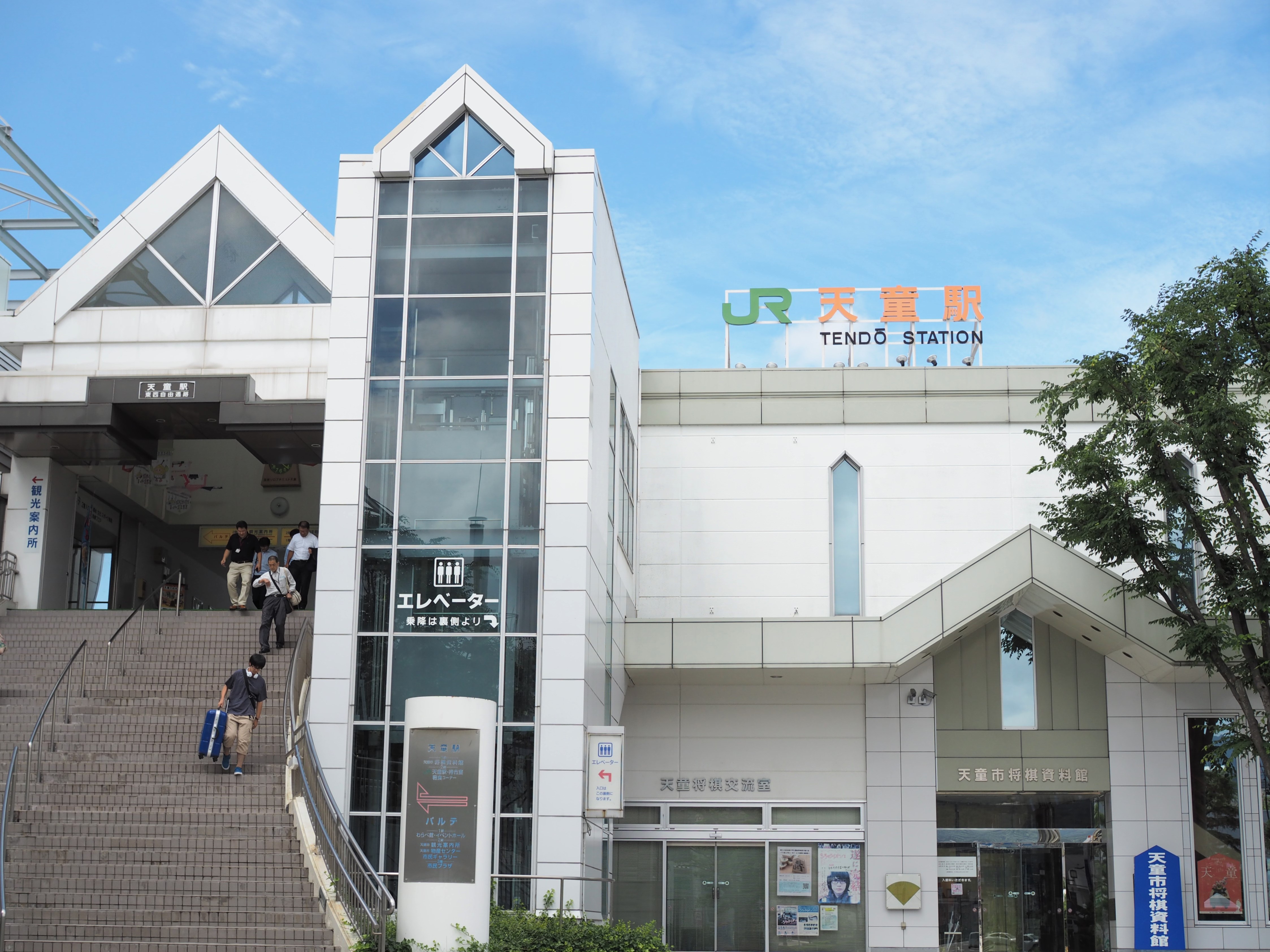 「天童は将棋の街ですからね。いろんなところに将棋駒がありますよ。この駅の形もそう」