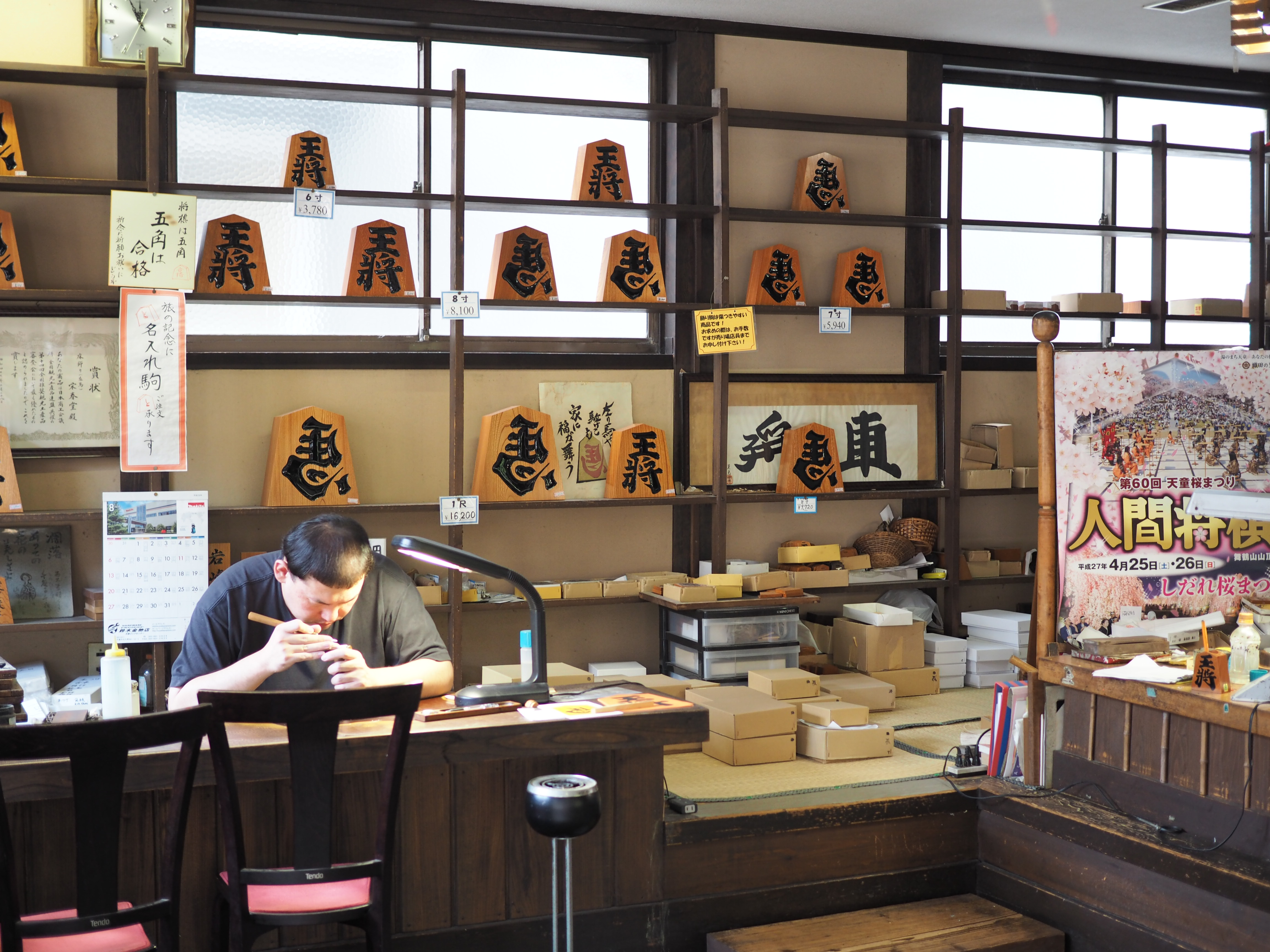 水車生そばの隣には、栄春堂という将棋駒の実演販売所がある。小さなお土産屋さんだが奥では職人たちが将棋駒を作るところを見学できる。受付のおばあちゃんに聞いたら、なんと50年も続いているお店なんだとか! 天童市を訪れたら、覗いてみるのも面白いかもしれない。